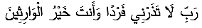 Rabbi laa tadharnie fardan wa anta khayr-ul-waarithien