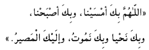 Allahumma bika amsayna, wa-bika asbahna, wa-bika nahya, wa-bika namut, wa-ilayk al-maslr.