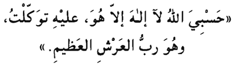 Hasbiy Allahu la ilaha ilia huwa 'alayhi tawakkalt, wa-huwa rabb ul-arsh il-azlm.