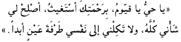 Ya hayyu, ya qayyum, bi-rahmatika astaghith. Aslih li shani kullah, wala takilni ila nafsi tarfata 'aynin abada.