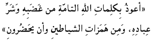 A'uthu bikalimat-illah it-tammati min ghadabihi wa sharri ibadih, wa min hamazat ish-shayatieni wa an yahduruun.